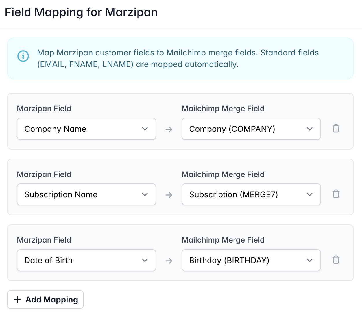 Completely rebuilt the Mailchimp integration with OAuth 2.0 authentication support, eliminating the need for manual API key management (now depreceated). Added comprehensive webhook support for real-time bi-directional sync, including subscription status changes, email updates, profile changes, and email deliverability status. Implemented intelligent batch syncing with rate limit handling for efficient bulk customer synchronization. Added detailed sync logging and status tracking with comprehensive error reporting. Features automatic customer profile updates from Mailchimp changes, prevention of sync loops, and smart handling of compliance states. Supports separate audience management for default customers and active subscribers with configurable merge field mapping.