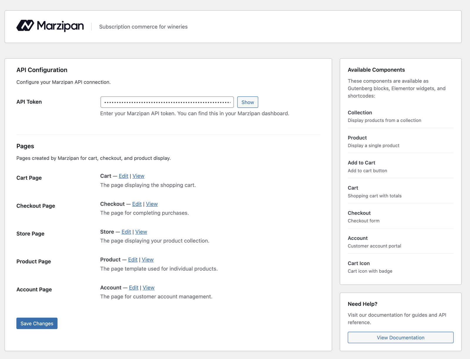 The Marzipan for WordPress plugin integrates Marzipan’s web components directly into your WordPress site, providing Gutenberg blocks, Elementor widgets, and shortcodes for displaying products, carts, and subscription management.